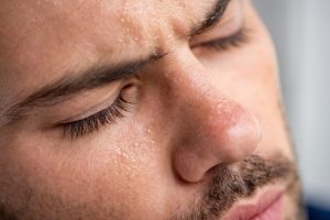 A hiperidrose crânio-facial acomete couro cabeludo, face e pescoço. É mais comum em pessoas de pele e olhos claros e pode ocorrer com rubor facial (vermelhidão facial ).